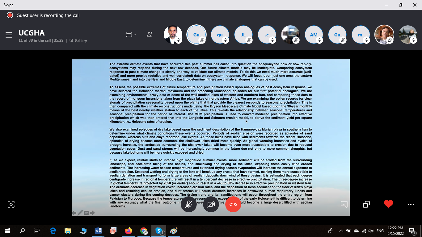 The Natural Geo Crisis webinar held on June 15, at 11:30 . . In this webinar, Dr. John Lambert, Dr. Peter Wigand, Dr. Ali Mohammadi, and Dr, Razyeh Lak, spoke in various fields such as subsidence, the effects of global warming on landscapes, and evidences of the salt effects of Lake Urmia. The end of this webinar was accompanied by an expert panel.