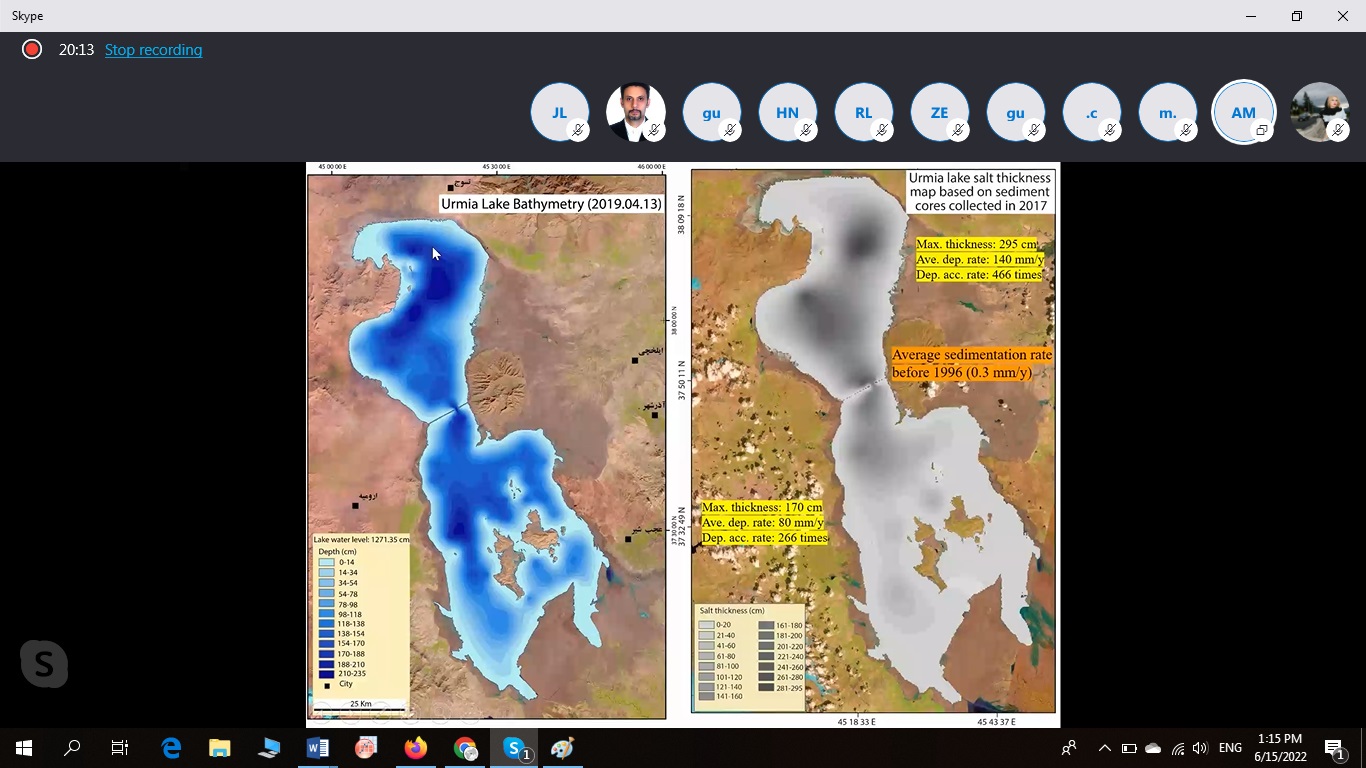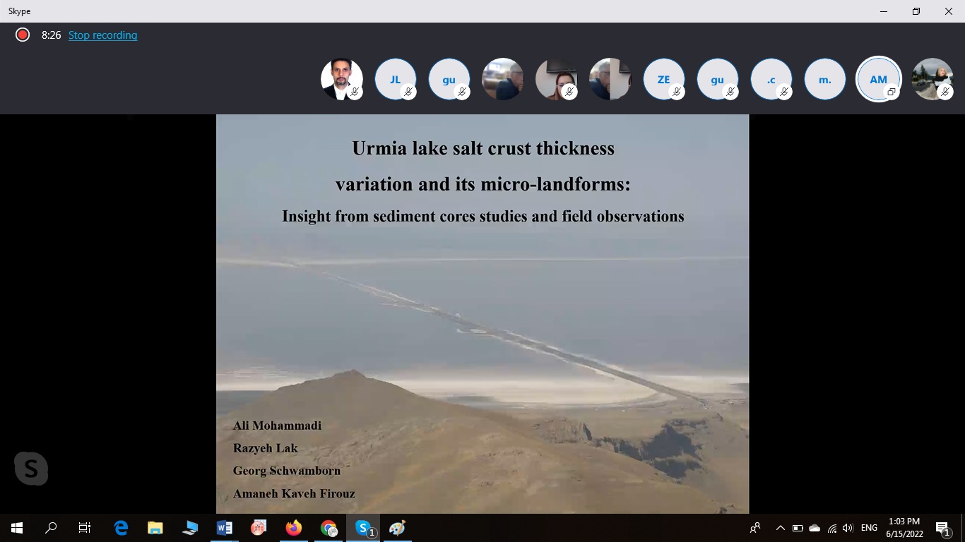 The Natural Geo Crisis webinar held on June 15, at 11:30 . . In this webinar, Dr. John Lambert, Dr. Peter Wigand, Dr. Ali Mohammadi, and Dr, Razyeh Lak, spoke in various fields such as subsidence, the effects of global warming on landscapes, and evidences of the salt effects of Lake Urmia. The end of this webinar was accompanied by an expert panel.