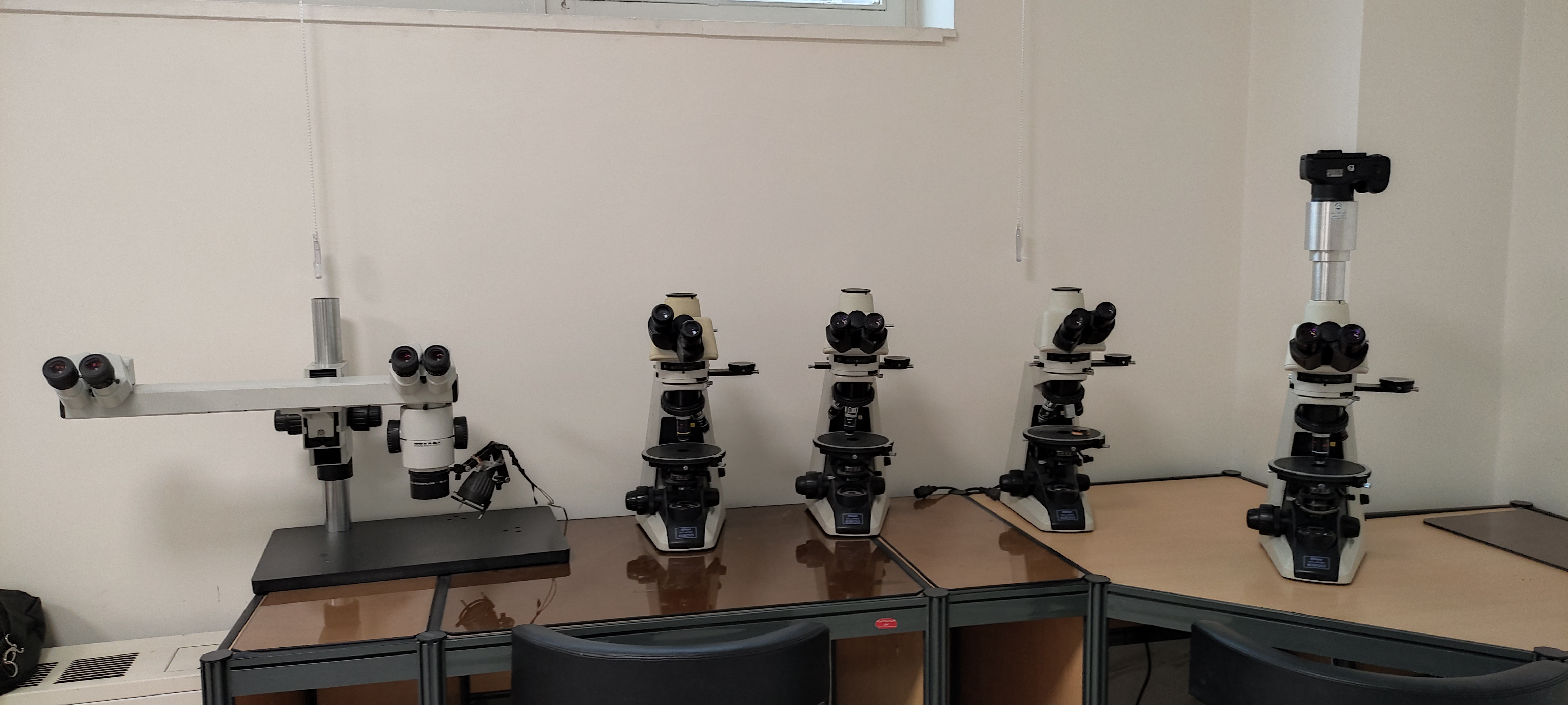 • Currently, the Microscopy Laboratory of the Earth Sciences Research Institute enables a wide range of microscopic studies, including: thin section analysis, mineralogical studies, paleoclimatic studies (isolated samples such as microfossils and palynology studies). The variety of objective lenses—100, 60, 50, 40, 10, 4, and 2.5 microns—facilitates studies in different sections of the laboratory.