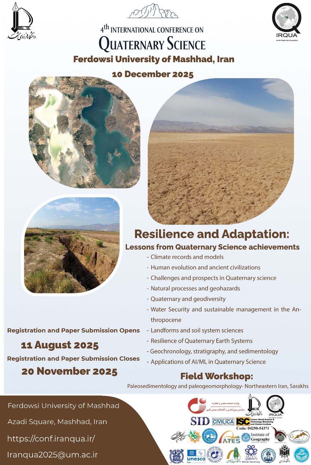 این کنفرانس معتبر در شهر مشهد، ایران، با همکاری مشترک سازمان زمین‌شناسی و اکتشافات معدنی ایران (GSI)، انجمن کواترنری ایران (IRQUA) و دانشگاه فردوسی مشهد برگزار می‌شود.